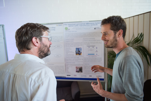 The afternoon finished with a collection of demonstrations and posters. The final year Tonmeisters showed posters summarising their technical projects, which prompted some interesting discussions with the attendees.